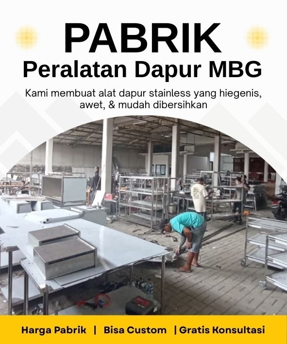 Pabrikasi Perlengkapan & Peralatan Stainless Untuk Kebutuhan Dapur MBG.